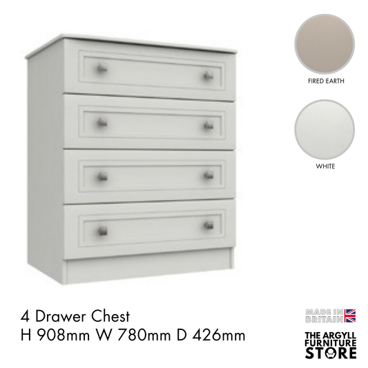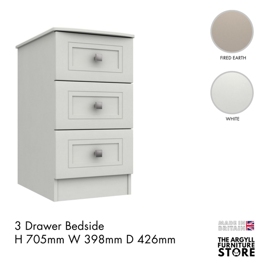 The Canterbury range brings clean, contemporary style into your bedroom with a modern take on classic shaker design. Each piece features a decorative cornice, brushed aluminium square handles and easy-glide drawers with heavy-duty bases for strength and durability. Available in a choice of two timeless colours, White or Fired Earth, it’s a smart, ready-built option for everyday living.