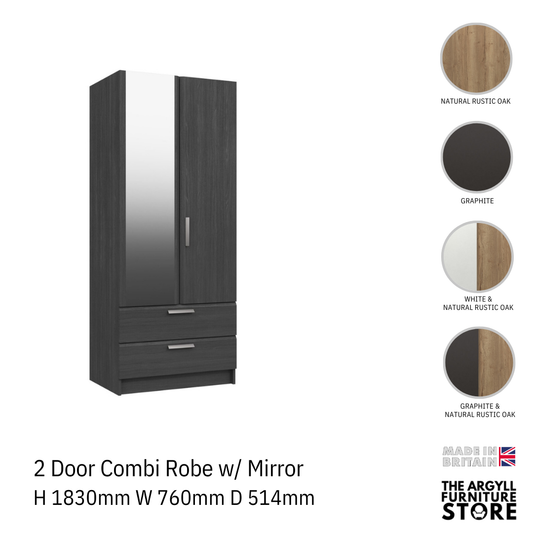 Waterfall 2 door combi wardrobe with mirror
