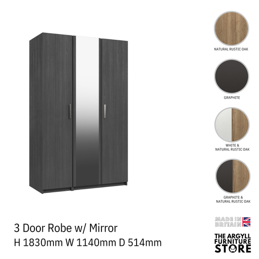 Waterfall 3 door wardrobe with mirror