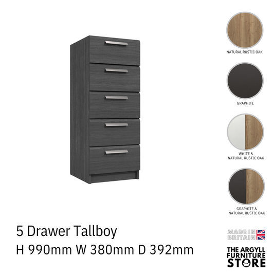 Waterfall 5 drawer tallboy chest