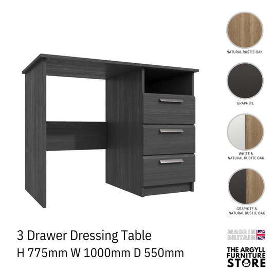 Waterfall 3 drawer dressing table