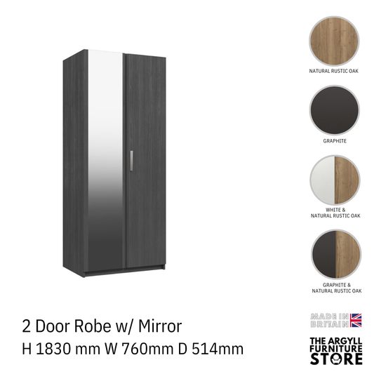 Waterfall 2 door wardrobe with mirror